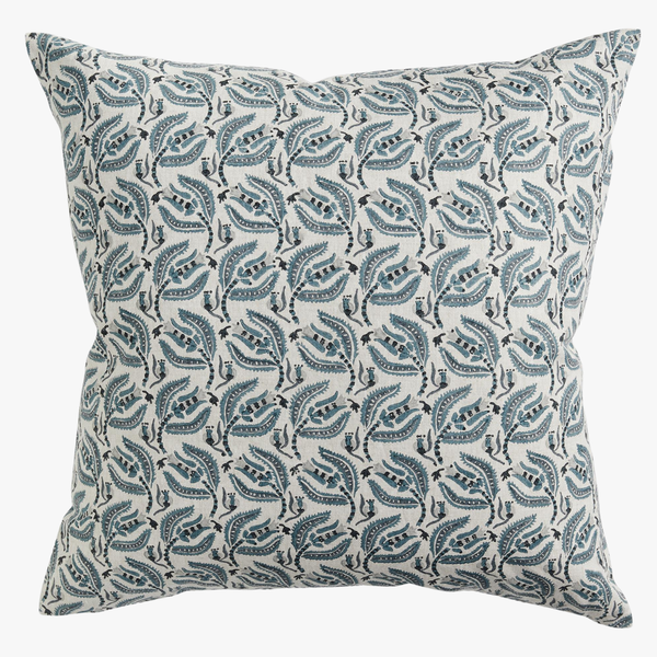 Indulge in the richly patterned Broccato Mineral Pillow Cover from Walter G, which has been inspired by vintage suzani embroideries. This charming pillow cover features intricate feather and floral motifs in shades grey blue, hand block printed on 100% natural linen. Transform your space with its rich and alluring design.