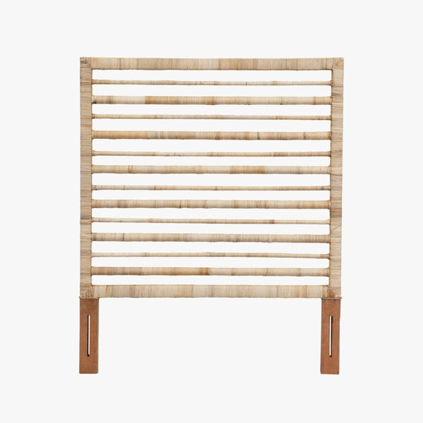 Our textural Montauk Natural Rattan Headboard features alternating small and large “striped” rattan poles and a flat rattan wrapped wood frame. This coastal inspired headboard is smart, classic and nautical all at the same time. Made from natural, unstained rattan sealed with a protective finish.