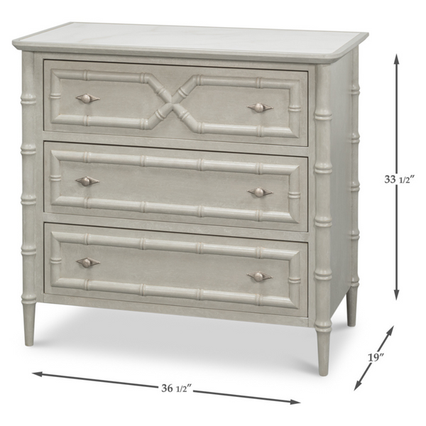 Our Tortuga White Chest blends luxe materials and classic styling for a designer look. This storage piece is a timeless addition to any well appointed interior, whether placed in an entry, bedroom or any living space that needs a stylish storage solution. Finished in a rich Italian Grigio finish, this versatile piece is topped with a white porcelain inset with soft, rounded corners and aged pewter hardware, adding a refined touch to any space.