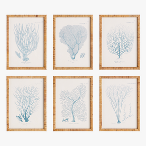 Our Sea Fern Framed Prints will bring classic coastal charm to any interior. This set of timeless wood framed sea fern art prints is sure to introduce the natural beauty of the sea to your decor. Hang these charming rattan framed prints in an entryway or any living space for a dose of serene color and classic coastal appeal.
