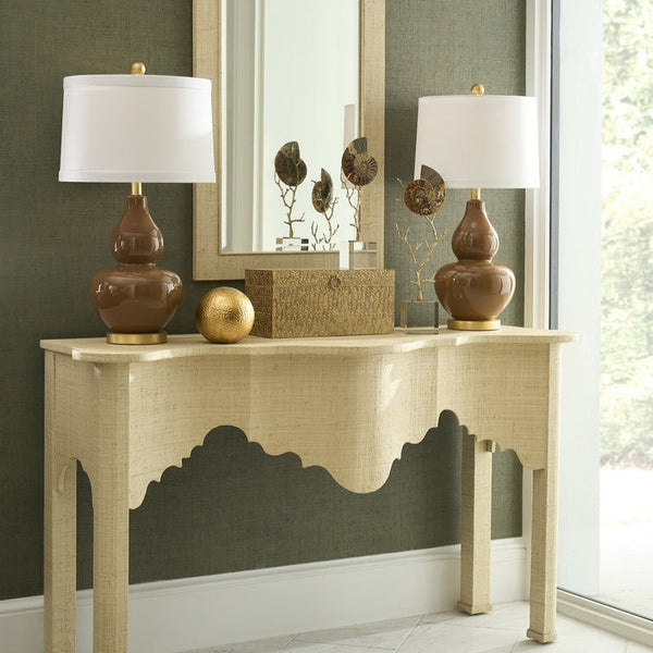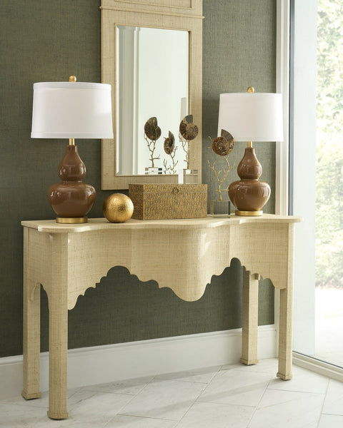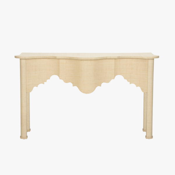 Our antique inspired Kensington Raffia Console is a modern take on classic George II English furniture design. This eye catching textural scalloped edge console table is a timeless addition to any well appointed home, whether placed in a coastal cottage or stylish urban abode. Designed by Jamie Merida.