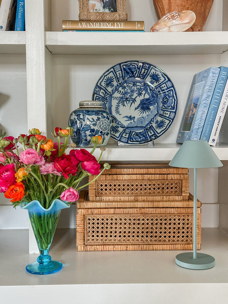 Our cordless Alix Sky Rechargeable Lamp is as versatile as it is stylish. Made to effortlessly go anywhere that needs light, no outlet needed. Choose from 3 light settings with the touch of a button. With a distinctive empire shade and charging station included, enjoy the ambiance of light from nightstand to kitchen island, desk or bookshelf. Illuminate anywhere & everywhere with our Alix Sky Blue Rechargeable Lamp.