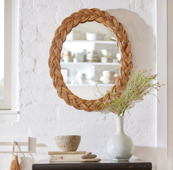 Our textural Castello Oval Mirror is inspired by ancient estates in the Umbrian countryside, combining Italian style with a nostalgic touch. Sustainably harvested rattan is braided into a texture-forward design that will add a timeless, artisanal feel to your interiors, whether placed in a coastal cottage or urban abode.