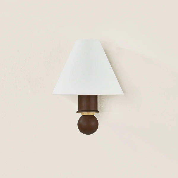 Our charming Cooper Wood Wall Sconce pairs a distinctive turned wood stem with a crisp white linen half shade. The polished wood evokes a sense of heritage and craftsmanship, enhanced by the decorative shaping. An aged brass reflector beneath the shade creates a soft, warm glow, adding to Cooper’s antique-inspired charm.