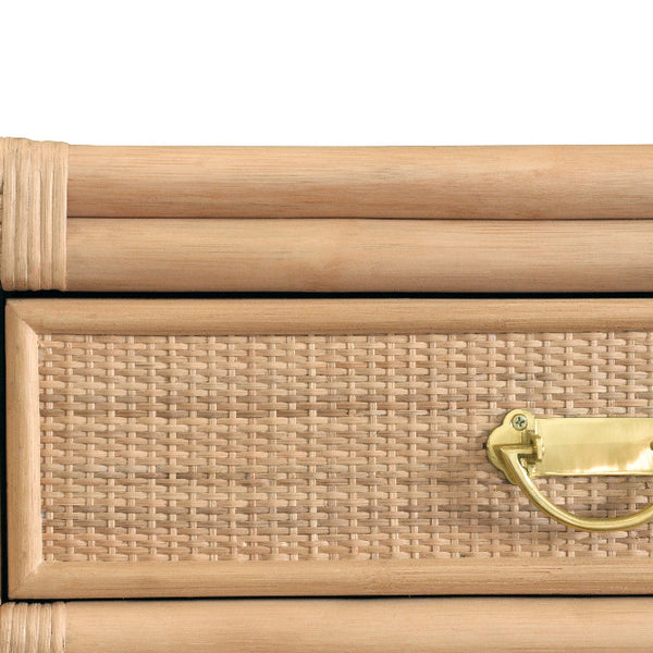 Our charming Fernandina Rattan Console Table marries clean lines, simple design elements and textural materials for a timeless appeal. A natural rattan frame is accented with a decorative woven rattan pattern back. The two drawer Fernandina Console is a classic storage option for any well appointed interior, whether placed in a coastal cottage or urban abode.