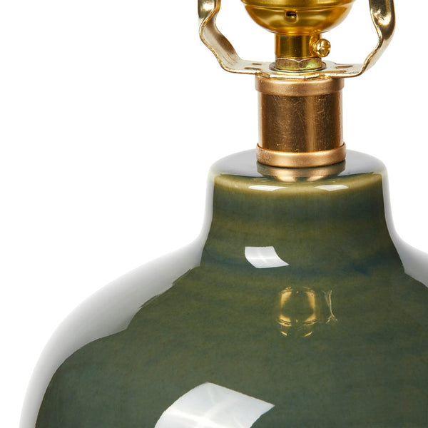 Our Jasper Olive Green Lamp is a classic piece with graceful proportions and timeless appeal. Its double gourd silhouette is formed from glazed porcelain, offering a smooth, luminous finish. A gold-leafed base and finial add a touch of warmth and polish, subtly elevating the design. Simple, sculptural, and endlessly versatile, the Jasper Lamp is a timeless addition for any well-appointed room.