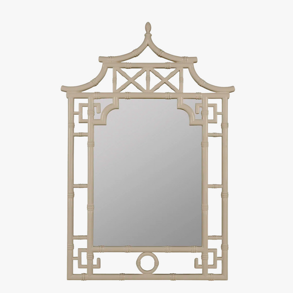 Our charming Pagoda Sand Lacquer Mirror is a timeless accent for classic interiors. With a nod to eastern design influences, this faux bamboo lacquered wall mirror elevates any space with chinoiserie flair.