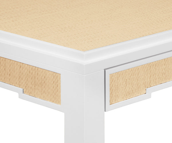 Our Roland Game Table is a charming piece that will elevate family game night with timeless style. This square games table has two storage drawers, the perfect place for storing your cards, game pieces, and other knick-knacks. This versatile piece includes a features a textural woven grasscloth top inset in a matte lacquer white frame.