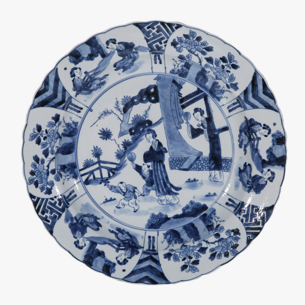 Our vintage inspired Noble Lady Decorative Plate is a timeless decorative accent for well appointed interiors. This classic blue and white porcelain round plate features traditional hand painted motifs. This chinoiserie style decorative plate is beautiful displayed on a shelf, or hung in a grouping of wall plates.