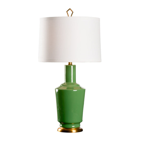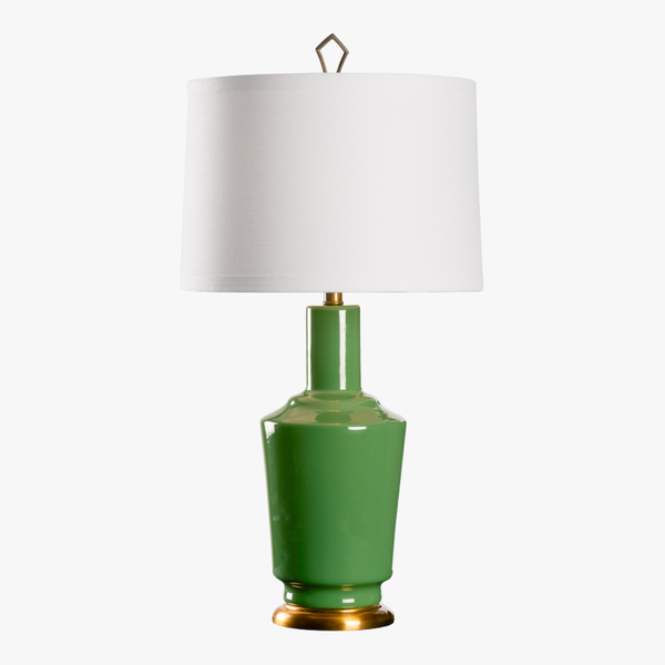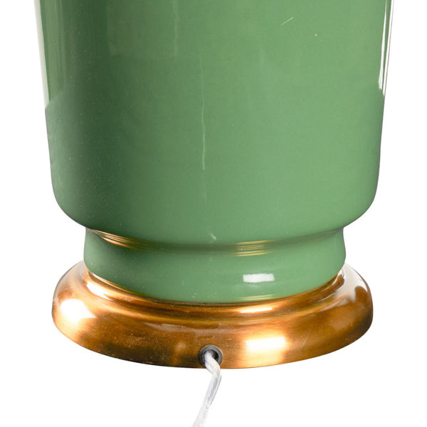 Our Audrey Herb Green Table Lamp exudes timeless elegance with a refined silhouette and subtle vintage charm. A warm antique brass base supports a green glazed vintage-inspired ceramic vase, creating a sophisticated foundation for the classic drum shade. Topped with a geometric gold finial, this lamp brings graceful style and soft ambient light to any interior setting.