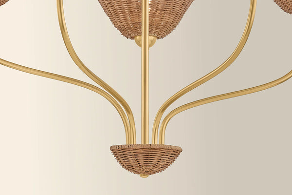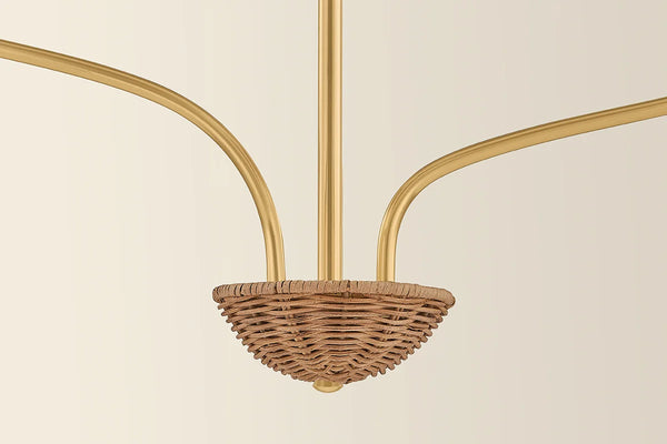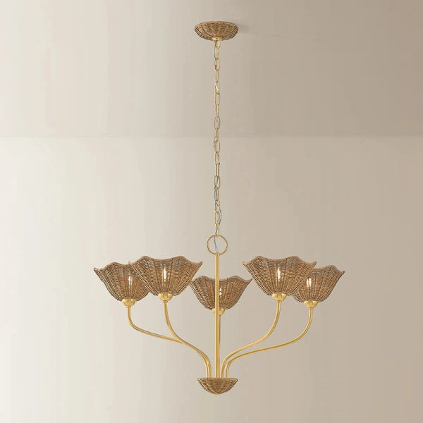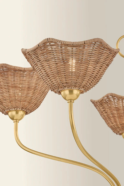 Our textural Kehlani Rattan Wall Sconce features flower inspired scalloped edge woven wicker shades and heritage inspired brass aged details. With feminine details, slender brass gooseneck arms and luxe materials, Kehlani is designed to suit a variety of interior styles, from a coastal cottage to stylish urban abode.