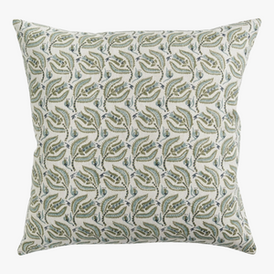 Our Samode Slate Pillow Cover from Walter G is a refined take on the highly intricate floral prints of antique Indian block prints. The fine blocks used to create this design have been hand printed by artisans in India in shades of olive green and grey blue.