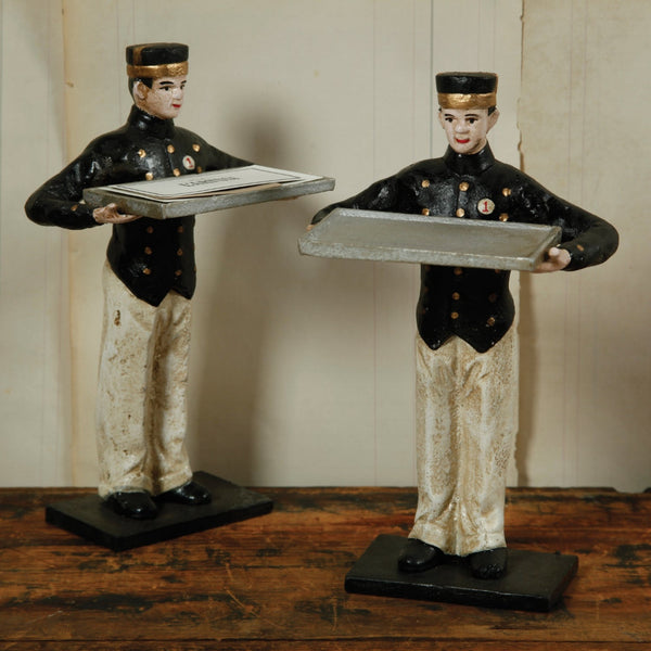Our Bellman Cast Iron Card Holder will lend a dose of timeless charm to your interiors. Inspired by an antique calling card holder, this hand painted cast iron bellman decor piece is an instant classic. The subtle distressed finish make this conversation piece look like a true antique.