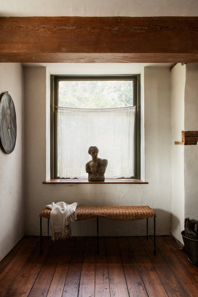 Rooted in old-world charm, our textural woven wicker Lacoste Bench combines artisanal craft traditions with timeless design. Perfectly suited for indoor or outdoor spaces, it transitions beautifully from entryways to the foot of a bed, or as the perfect garden accent. Thoughtfully handcrafted from sustainably sourced rattan and hand hammered wrought iron.