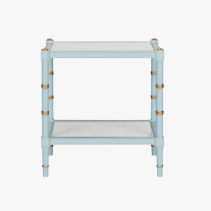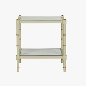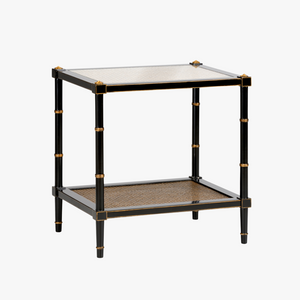 Our Cabana Cane Side Table invites classic styling into to your home with its faux bamboo detailing and woven cane panels. This versatile bamboo end table features gold accents and a tempered glass top. Its woven cane lower shelf is perfect for decorative styling or a stack of your favorite books and magazines. The Cabana Cane Side Table is a chic addition to any well appointed interior, whether placed in a coastal cottage or classic urban abode.