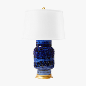 Our Ungaro Sea Blue Table Lamp brings bold texture and timeless charm to any interior. This vintage inspired ceramic lamp is carefully crafted by artisans in Italy. Rich blue glaze and raised circular detailing create a striking silhouette with playful sophistication. Ungaro is an eye catching table lamp for well appointed interiors.