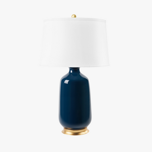 Our classic Leighton Sky Table Lamp exudes sophistication with its smooth, curved silhouette that seamlessly bridges classic and contemporary aesthetics. Its simple, yet chic design is complemented by a gold base, adding a touch of warmth and refinement, making it a perfect accent for any room.