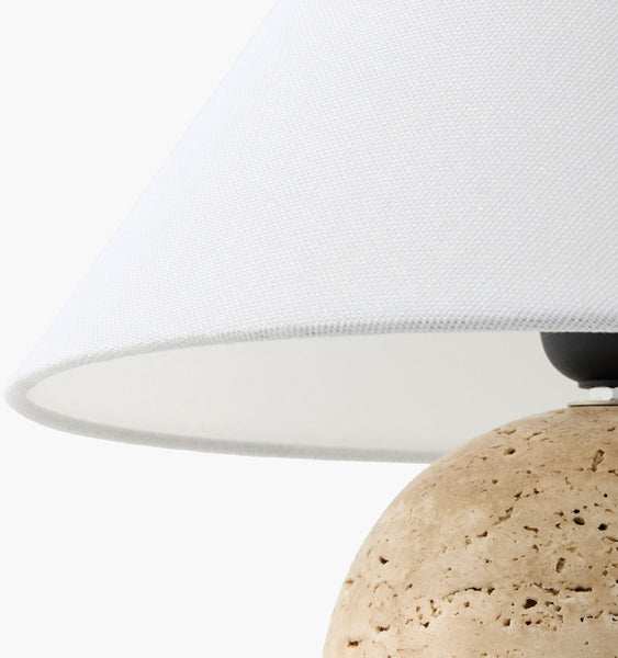Our charming Bromley Travertine Mini Lamp is small in size but big in style. Topped with a crisp white empire linen shade, this tiny stone table lamp will complement any decor. A timeless accent lamp for the kitchen counter, bathroom vanity or open shelving vignette.