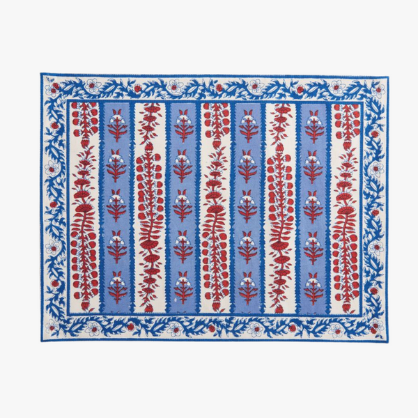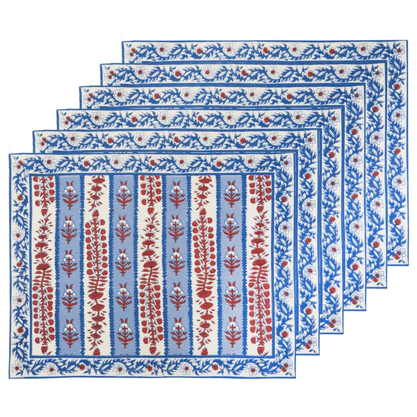 Our classic blue and red block print Avignon Placemats are made by talented textile artisans in India. The versatile blue and red color palette and striped floral motif will elevate any table setting, whether indoors our out. A hand printed textile reflects the touch of a human hand, the sensibility and skill of the craftsman, making each piece unique.