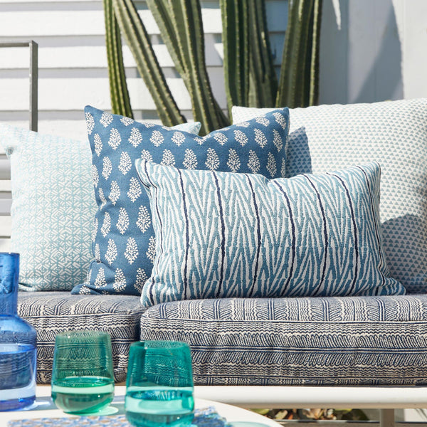 Our Batik Mineral Outdoor Pillow Cover from Walter G is inspired by the traditional batik textiles of Indonesia. Batik is a graphic all over design that has been translated into a truly luxurious and durable outdoor cushion. Woven with Sunbrella performance yarns, these pillow covers have a soft hand feel while being stain and mold resistant, fade proof and water repellent. From the family sofa to the pool lounge, these cushions will be part of your home for years to come.