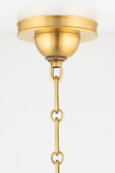 Our charming Cambridge Darkest Blue Chandelier from designer Mark D. Sikes is an instant classic. The Cambridge Collection features refined, metal drum shades with sleek details. The brass interior of the chandelier amplifies light when illuminated, creating a warm, atmospheric glow. Strips of metal with visible screws add a modern touch. Available in 4 and 6-light formats, Cambridge is well-suited to a dining room or kitchen.